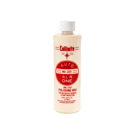 Collinite #325 - to środek który w jednym kroku odświeża i zabezpiecza lakier. Usuwa drobne niedoskonałości powierzchni takie jak mikro-zarysowania i zmatowienia, oczyszcza lakier i zabezpiecza go trwałym woskiem hybrydowym. Pakiet "All in One" zamknięty w zwartej formule Collinite #325 pozwala na oszczędność czasu i energii. Podkreśla spektakularny połysk lakieru, a zarazem stanowi jego optymalne zabezpieczenie.