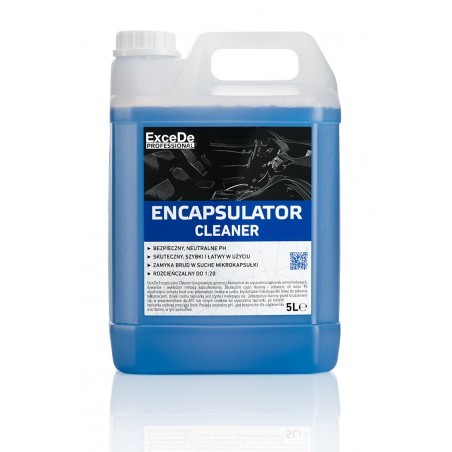 ExceDe Encapsulator Cleaner - to najnowszej generacji koncentrat do czyszczenia tapicerek samochodowych, dywanów i wykładzin metodą kapsułkowania. Skutecznie czyści tkaniny i odświeża ich kolor. Po wyschnięciu zamyka brud oraz pozostałości środka w suche, krystaliczne mikrokapsułki łatwe do zebrania odkurzaczem, dzięki czemu tapicerka jest czysta i nielepiąca się. Zabezpiecza tkaniny przed brudzeniem się, w przeciwieństwie do APC lub innych środków do czyszczenia tapicerki, po których tapicerka szybciej przyciąga brud. Posiada neutralne pH - jest bezpieczny dla użytkownika oraz tkanin, w tym podsufitek. Bardzo szybki i łatwy w użyciu, nie wymaga wypłukiwania odkurzaczem na mokro, wystarczy po wyschnięciu odkurzyć na sucho.