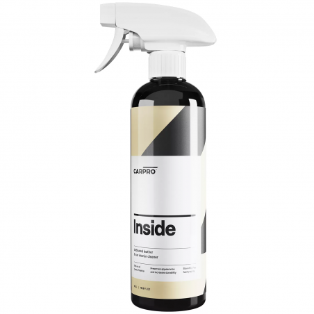 CarPro Inside – to niesamowite rozwiązanie do czyszczenia wnętrz pojazdów o różnych kształtach i rozmiarach. Specjalnie opracowana formuła przeznaczona jest do czyszczenia elementów winylowych, plastikowych, tapicerki skórzanej i innych powierzchni wewnętrznych. Produkt wykorzystuje silnie pieniącą się mieszaninę zastrzeżonych środków powierzchniowo czynnych i delikatnych detergentów, dzięki czemu z łatwością usuwa brud, pot, oleje oraz wszelkiego rodzaju zabrudzenia spotykane we wnętrzu samochodu.
