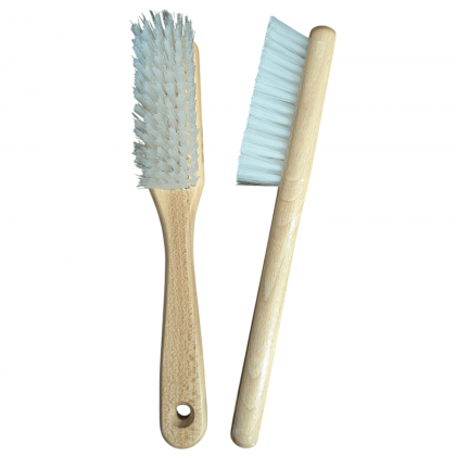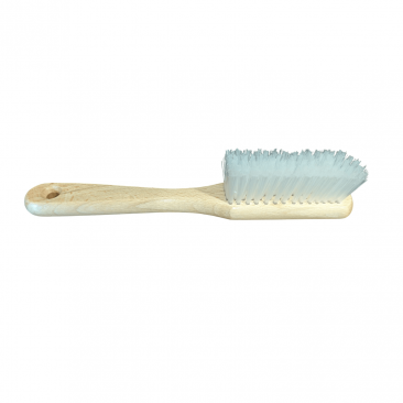 Zaoblone boki szczotki minimalizują ryzyko uszkodzeń, a starannie dobrana wysokość i gęstość włosia umożliwiają skuteczne „wyczesywanie” zabrudzeń z głębi włókien – bez efektu zmechacenia powierzchni. Przedłużony, drewniany uchwyt zapewnia wygodę pracy oraz optymalną dźwignię.